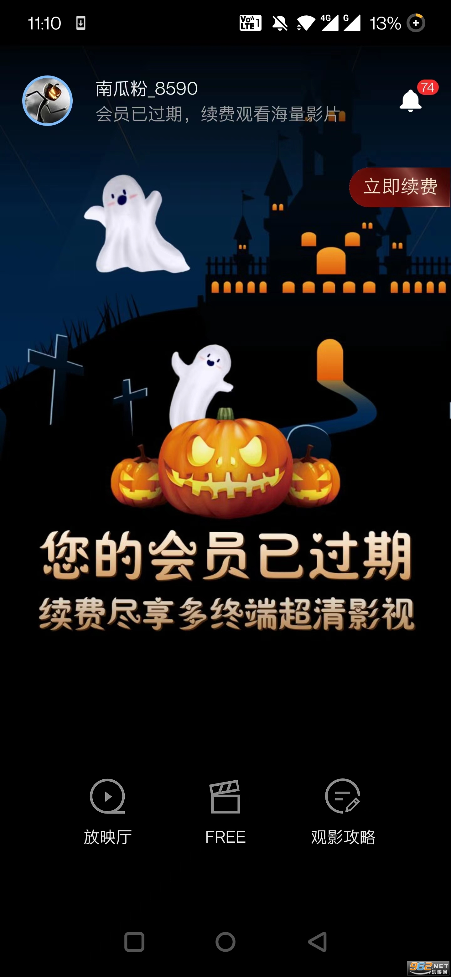 1、我们进入南瓜电影后,点击右下角【我的】进入个人信息界面,找到【我的会员】点击进入;