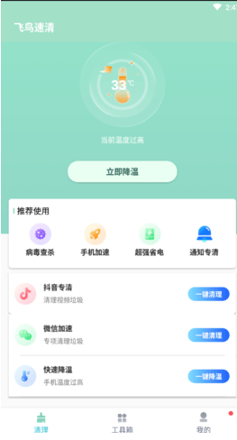 2、Bird快速清洗软件操作简单方便,保护手机免受病毒干扰,用户可以清理各种垃圾。