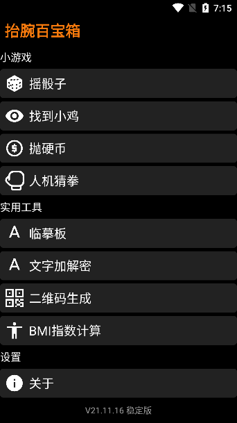 抬腕百宝箱软件是一款腕上工具箱,该软件所包含的工具是非常齐全的,同时还有非常丰富的各类小游戏,工具等内容,所使用的手机型号也是非常丰富的,同时支持手表的健康检查,基础画面设置等,功能性强,有需要的小伙伴们快来下载体验吧!