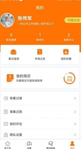 1、[投递反馈]:跟踪求职状态,了解求职进展。接收面试通知