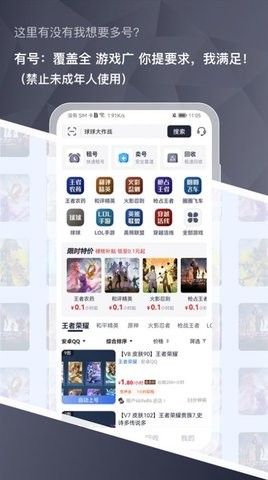 有号游戏交易是一款非常好用的游戏账号交易平台,这款软件内拥有各种各样的游戏账号,包含了超多的游戏类型,致力于满足不同用户的需求,并且每一个账号都拥有详细的简介,用户们可以在线查看,避免踩坑,除此之外,这里的交易环境也是十分安全的,大家可以放心的交易,有需要的朋友快来下载体验吧。