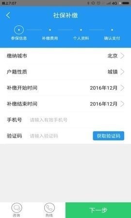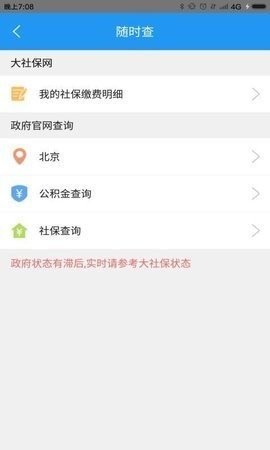 1、社保查询:查询参保信息,包括参保时间、缴费明细等信息