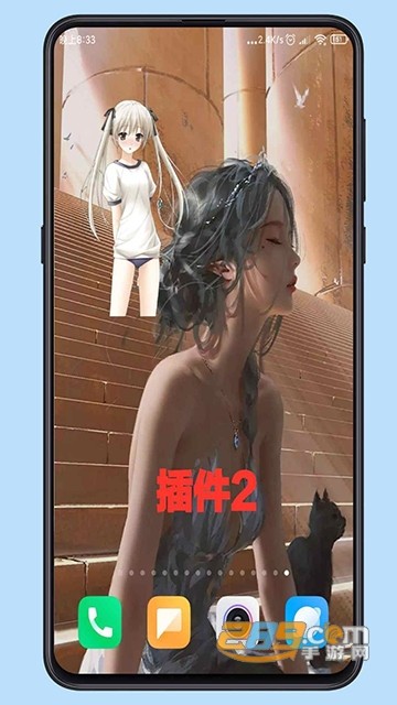3、一款很好玩的小插件,小美女会自动根据你的手机电量来改变装束,只需要下载完成后,在手机桌面空白处长按。