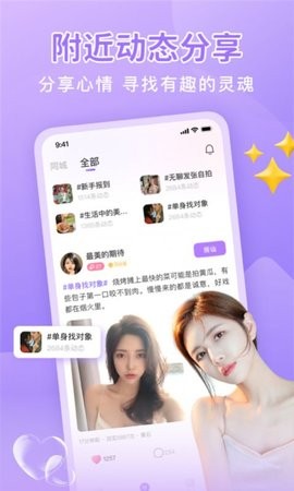 1、24小时在线甜言蜜语,语音聊天,分享动态,寻找附近单身异性