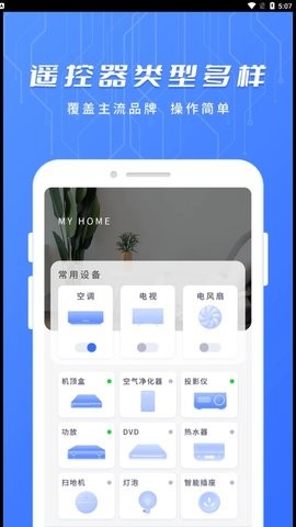 万用智能遥控是一款非常好用的遥控器软件,这款软件的功能十分强大,内置了海量的遥控码,能够诸多智能设备进行匹配,让你的手机变身万能遥控器,轻松畅享便捷的遥控服务,从此告别到处找遥控器的烦恼,有需要的朋友快来下载体验吧。