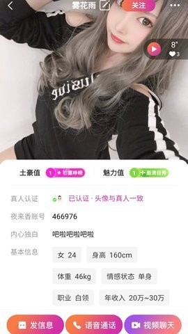 夜来香交友聊天软件是一款非常好用的在线交友聊天软件,提供的玩法也是很全面的,基本都是当代年轻用户们所喜欢的,而且这里拥有的用户都是经过实名认证,只为给广大的用户带来更好的社交环境,新的社交模式在这里等你体验,能分享日常生活状态吸引更多的关注,参与各种话题互动哦!