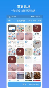 使用步骤,安装打开-点击扫描数据--长按预览,打钩需要恢复的数据>点击恢复。