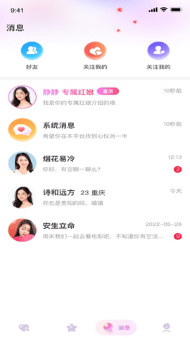 黔城小红娘是一款真实又靠谱的交友平台,这款软件集多种社交功能于一体,致力于为用户们提供最优质的交友体验,并且这里汇聚了来自全国各地的用户,每一位都经过实名认证,信息真实可靠,大家可以放心的交友聊天,想要脱单的朋友赶快行动起来吧。