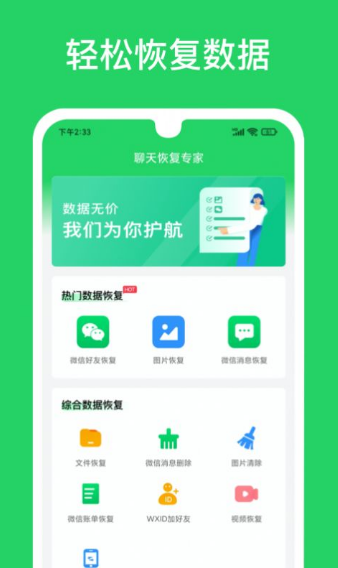 聊天恢复专家app是一款非常强大的文件管理应用软件,,涵盖了多种相应的功能服务,根据自己的需求在线操作使用,都是免费提供的哦,给大家带来了更多的优质服务,这里一些最新的情况也可以随时掌握,同时还可以找回丢失的一些文件,可以更好的保存好哦!