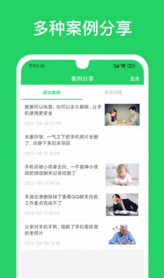 1、再也不用担心自己误删除文件以及聊天记录了,十分便捷的手机恢复工具;