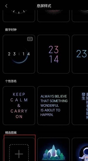 你可以选择任意图片作为息屏图案,黑色背景或透明背景的显示效果会更好。
