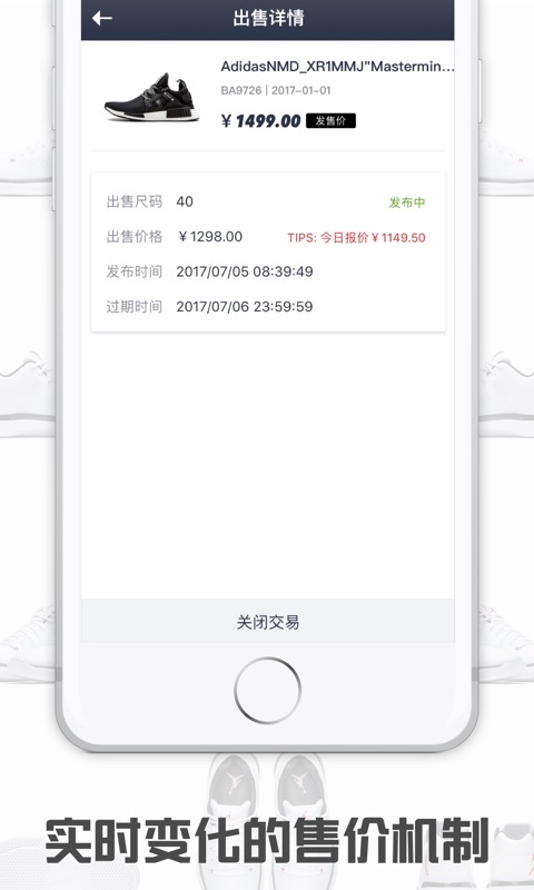 1、用户可以选择运动鞋的尺码,快速查看交易的数据曲线。