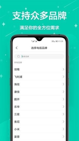 2、手机遥控器:完美遥控电视机、机顶盒、空调、投影仪、网络盒子、DVD等家电