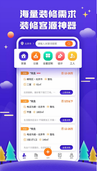 3.多种装修订单更快了解,随时查看你关注的各类装修订单也会非常的省心。
