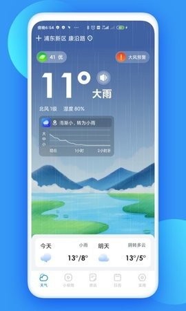 观云天气是一款非常实用的天气预报软件,这款软件的体积小巧,功能强大,为用户提供了温度、湿度、空气质量等诸多详细的天气信息,让用户可以轻松掌握天气,并且软件还有多种生活实用小功能等你来一一体验,感兴趣的朋友快来下载试用吧。