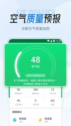 1、当日天气:显示当日天气状态,风级、风速、温度、气压、空气质量