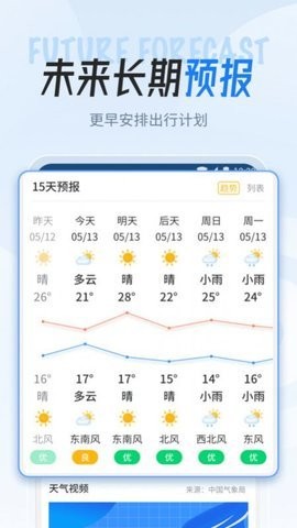 3、15天预报:可查看15天内的天气状态,了解天气变化为出行保驾护航