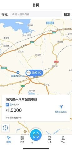 1、再也不用担心汽车在外面没有电了,首页地图展示充电场站的具体位置。