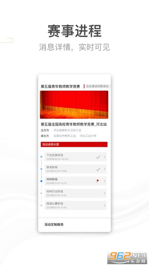 3、赛事报名功能方便快捷,可以通过手机报名参加自己感兴趣的教学竞赛。