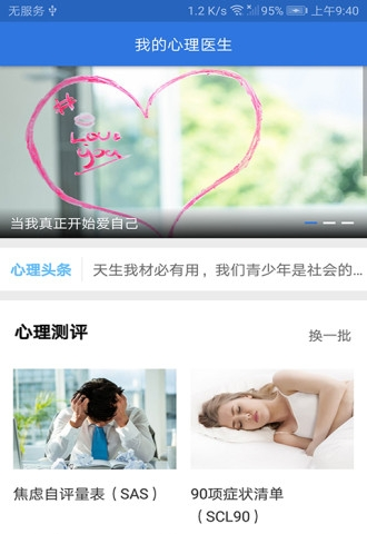我的心理医生app是一款有关心理学的健康服务软件。在我们的日常生活中,有一个良好的心理健康是非常重要的,该软件功能齐全,各种心理测试、情感测试,心理专家介绍、咨询等,帮助小伙伴治疗自己的心理问题,平台提供心理知识科普,帮助小伙伴处理好自己的心理问题,还为小伙伴提供更多的心理测试,在这里小伙伴可以随时测试自己的心理问题,有需要的小伙伴快来下载体验吧!