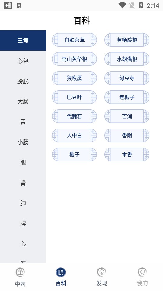 包含了各种药材的简介,根据主治人体的部位(肝、心、脾、肺、肾、胆、小肠、胃、大肠、膀胱、心包、三焦)进行分类。