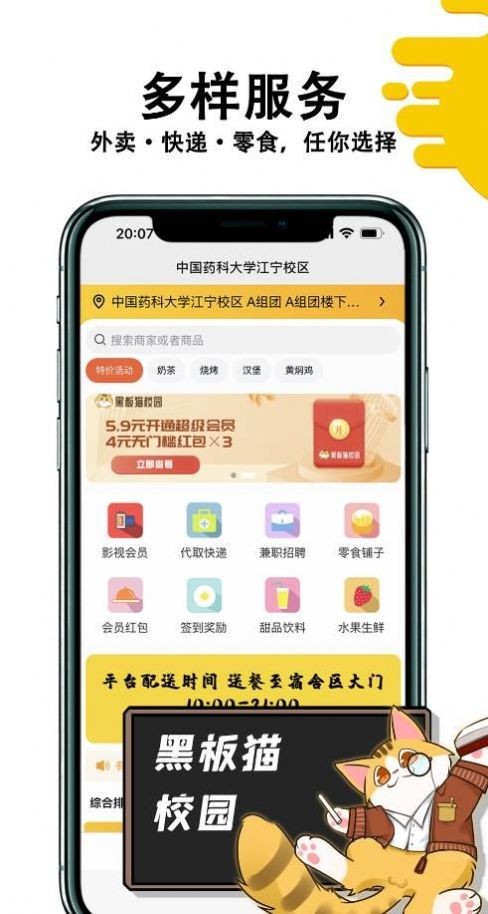 黑板猫校园app是一款非常稳定好用的手机校园外卖服务平台哟,功能非常的全面哟里面各种品质商家提供给大家筛选,全部都是品牌商品非常的好用哟,为广大的用户们提供优质的服务,各种美食等你来体验,喜欢就赶紧来下载试试吧。