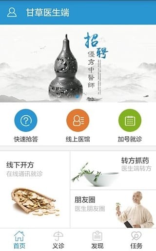 甘草医生医生端app下载安卓官方版是一款在线咨询医疗软件。在这里,你可以在网上为患者开出相应的药方,方便患者去中药店取药。发扬中国中医传统,针对现在看病难,看病贵,而推出的互联网问诊软件,非常方便,用互联网思维和技术提升行业标准。有需要的就来下载使用吧!!!