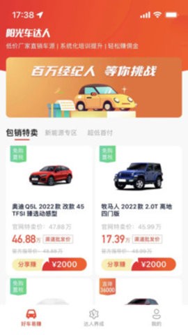 2、用户可以在线注册成为汽车推广经纪人,赚取利润。