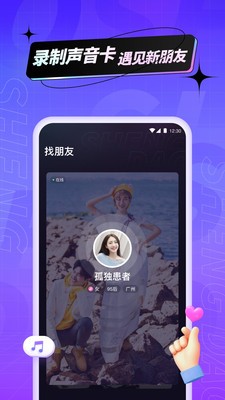 1、用声音录制属于你的交友宣言,滑卡片听声音,找到心动的声音结交新朋友。