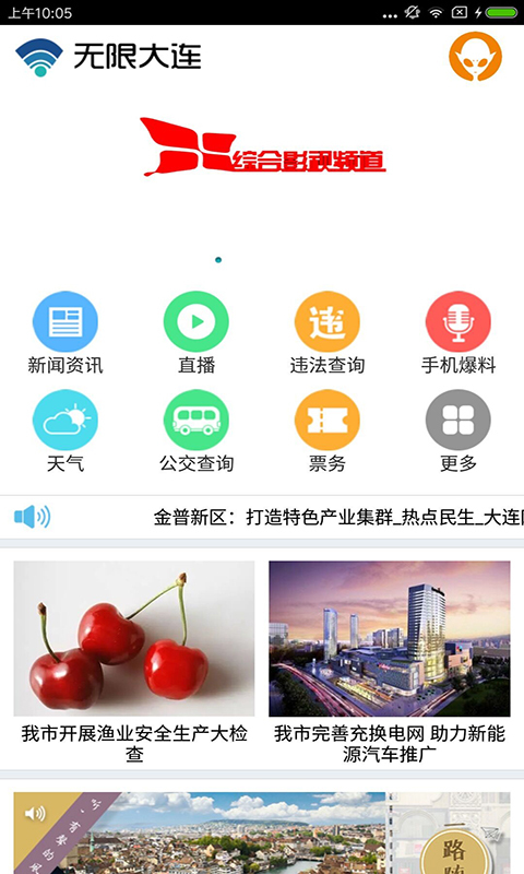 无限大连最新版是一款专为当地打造的特色服务软件,软件内容丰富多样,您可以在该软件上查看到最新新闻热点视频,实时观看,同时还有非常多便民类服务,公交查询、天气状况、票务购买等,非常实用,有需要的小伙伴们快来下载体验吧!
