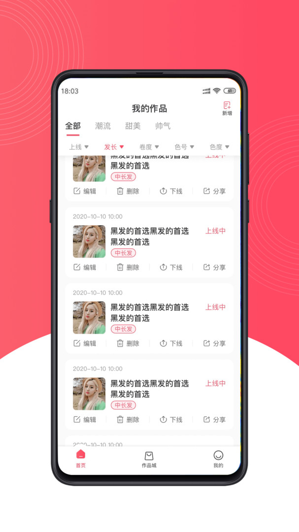 1、美发师可通过应用管理自己的作品和个人作品主页