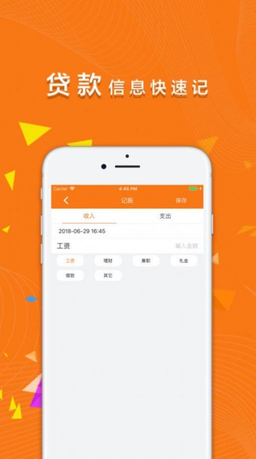 1.精美图标:有各种标签,打车、聚餐、超市等;