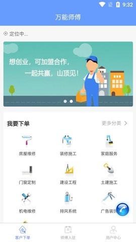 万能师傅是一款非常好用的维修平台,这款软件的功能十分强大,汇聚了各行各业的维修师傅,无论是手机、电脑还是空调、电视、汽车等等都可以在这里找到,每一位十分都经过专业的技能培训,十分的专业,致力于为用户提供最棒的维修服务,有兴趣的朋友欢迎下载体验哦。