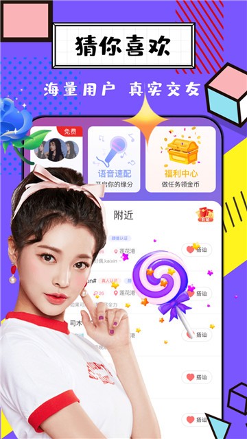 4、同城约会:聊天交友同城约会软件,跟附近的人成为知心好友,陌生人附近约会,附近交友,一起吹牛、闲聊乡聊。