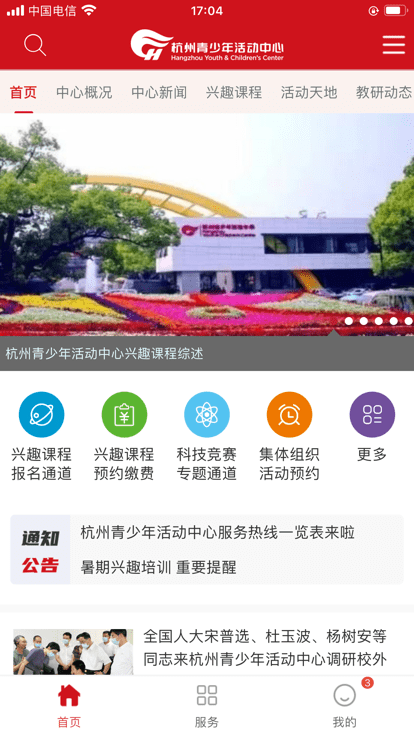 3.目前“数智杭青少”APP已汇集中心官网、兴趣培训报名、阵地预约、红领巾争章等12个应用服务,将来新的应用平台还会不断接入。