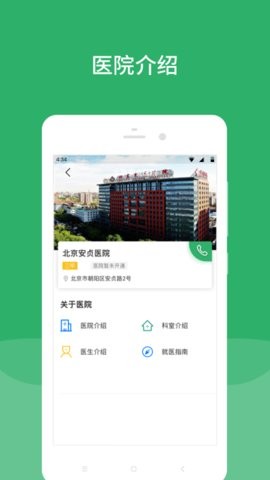 3、医院信息一览,关于医生介绍、科室介绍和医生介绍、就医指南可以实时查看;