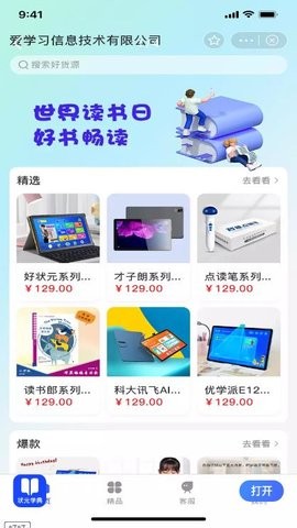 1、各种各样的学习辅助用的商品全都有,比如复读机,点读机,电子书籍等等。