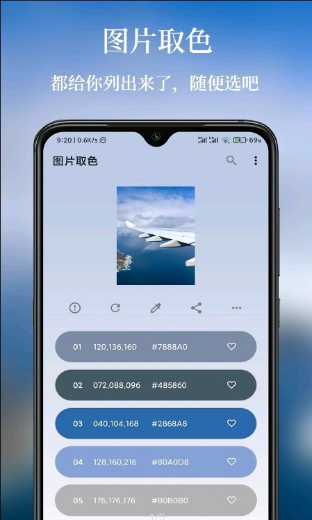4、以文字,图片的方式保存或分享配色方案。