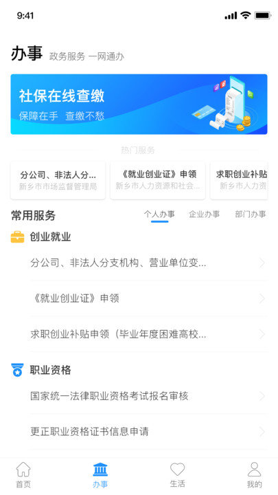 2、找政府办事,在线查询、办理、预约一站搞定,涵盖社保、出行、水电气