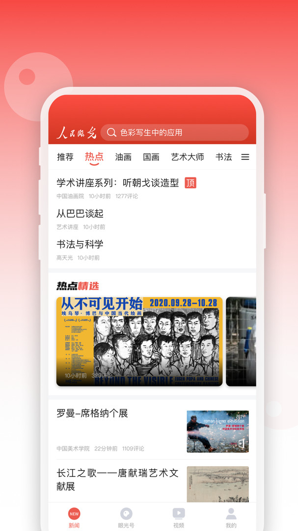 人民眼光是一款以艺术为主的新闻资讯平台,用户可以在这里看到各个国家的资讯,以及他们的艺术形式,并且还有大量的艺术家、明星都会发表文章,供大家观看,想了解艺术的朋友们,可以赶紧下载试试吧!