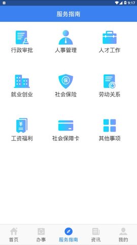 2、该APP拥有社会保险、人事人才、劳动关系等诸多功能服务