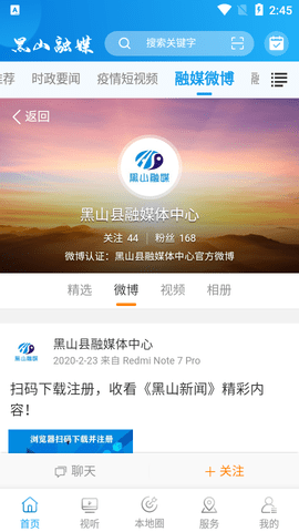 黑山融媒体中心app是一款非常好用的新闻阅读软件,专门为黑山县打造的新闻软件,软件里面有各种各样最新的新闻资讯,用户可以通过这款软件快速了解到当地的一些资讯,同时还有各种政务民生,还能自由发表意见态度,非常方便实用,感兴趣的小伙伴快来下载吧。