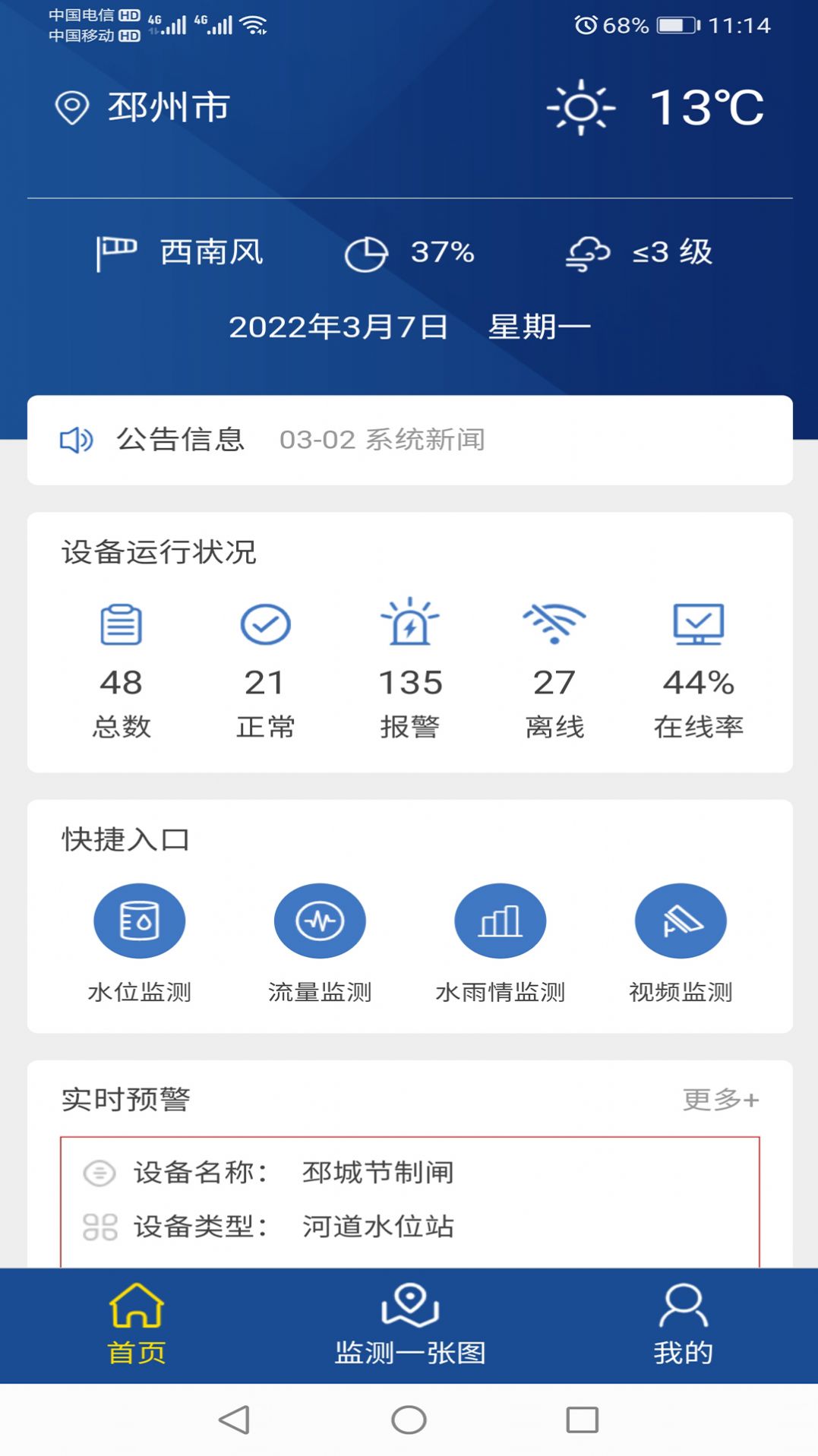 1,邳州防汛app中拥有非常强大的设备系统模组,不同的系统模组都是实打实的位于水流和水讯位置地方进行监控和管理,看淡所有不同的情况浮动变化。