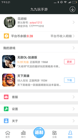1、正版网游:最热门的正版手机网游,有些还有折扣充值哦