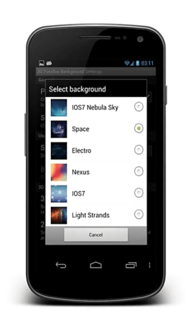 3d parallax background汉化版是一款免费的安卓3D视差壁纸软件,这款软件可以让你的手机壁纸更有特色。它可以通过各种特效来实现IOS7立体视差效果,此外软件还能提供3D OpenGL 环境,让你的手机桌面更具一格