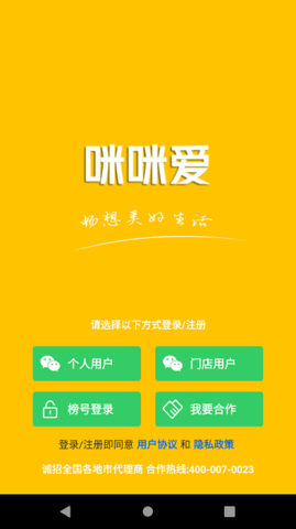 多类别的登录模式,有着个人用户、门店用户等身份登录。