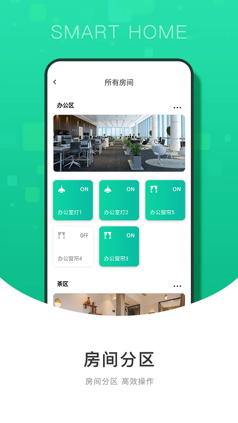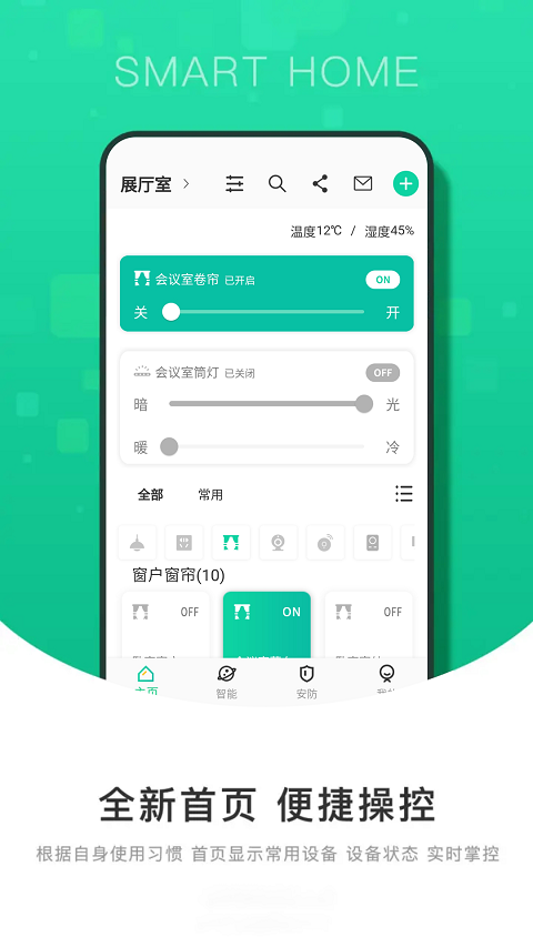 2、窗帘、灯光控制,可以远程开关、定时开关、一键全开全关。