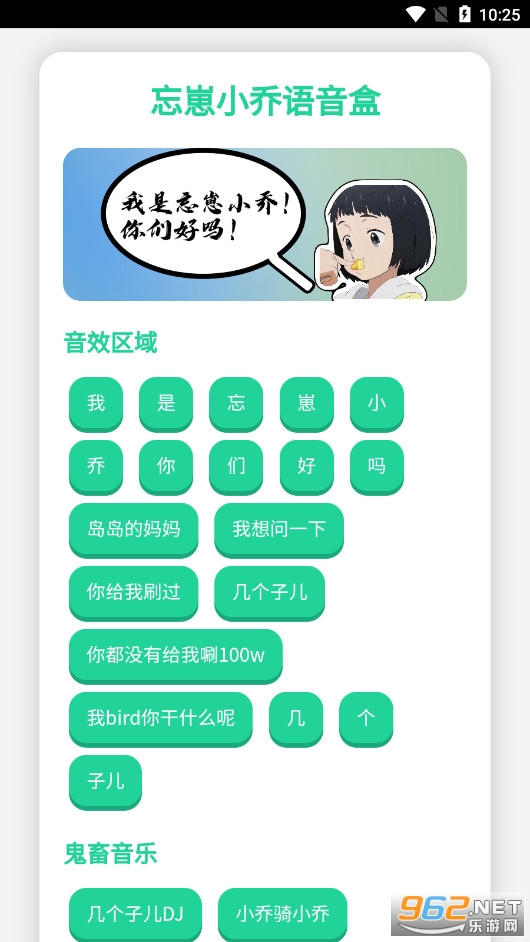 《忘崽小乔语音盒app》是一款专注于网红忘崽小乔主题的趣味语音包软件,整合了海量热门语音片段,支持一键播放与多场景应用,如在QQ中实时变声发送,轻松实现好友恶搞或朋友圈整活。应用操作零门槛,即点即用,并提供个性化设置,让用户免费享用高清音质素材,为社交互动增添无限乐趣。