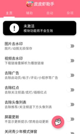 这是专为针对皮皮虾所打造的一款助手软件,免激活,基于xposed框架,内集解除图片/视频下载限制、去除帖子/评论区广告、个人主页显示注册/出黑屋时间、解除神评已送满限制、无损保存视频、图文等等,还可直接修改软件一些相关设置,让你专心享受搞笑,在皮皮虾上肆无忌惮的玩耍。