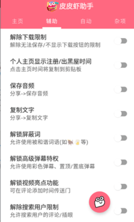 皮皮虾助手是一款非常好用的辅助软件,专门为皮皮虾app打造而成,软件里面功能十分丰富,让你在刷帖子的时候可以有更好的进行互动,软件可以实现图片视频去水印、视频解析下载、解锁屏蔽词等功能,有需要的小伙伴快来下载吧。